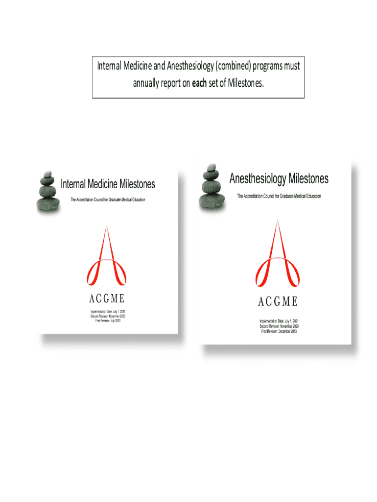 Internal Medicine and Anesthesiology (combined) programs must annually report on each set of Milestones. Internal Medicine Milestones The Accreditation Council for Graduate Medical EducationImplementation