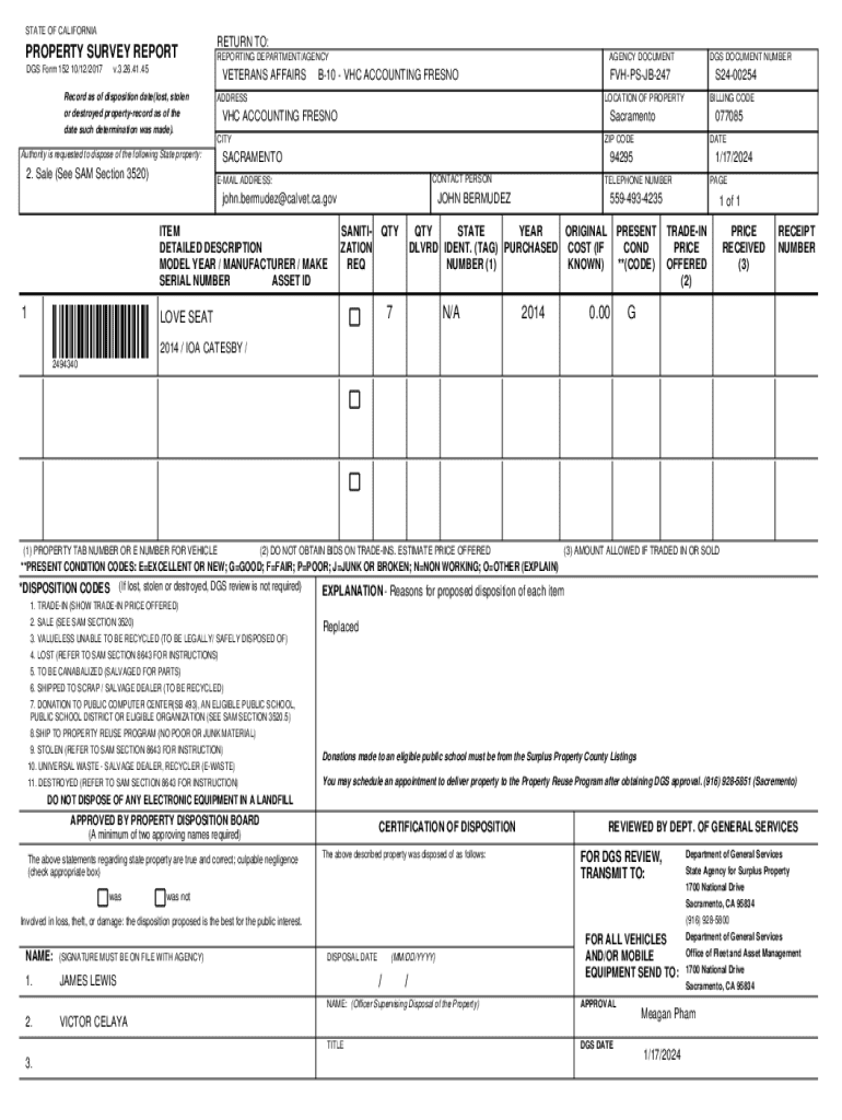 STATE OF CALIFORNIAPROPERTY SURVEY REPORT