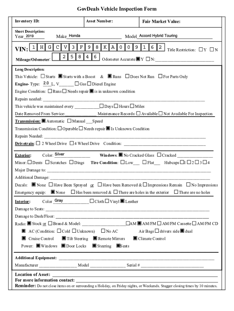 Inventory ID:Asset Number:Fair Market Value:Short Description:Year___Make___ Model___ljlVIN:
