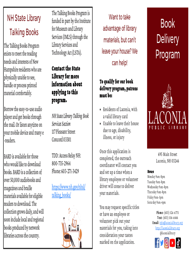 NH State Library Talking Books The Talking Books Program exists to meet the reading needs and interests of New Hampshire residents who are physically unable to see, handle or process printed material