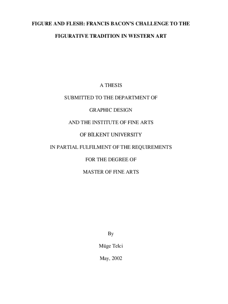 FIGURE AND FLESH: FRANCIS BACON CHALLENGE TO THE FIGURATIVE TRADITION IN WESTERN AREA THESIS SUBMITTED TO THE DEPARTMENT OF GRAPHIC DESIGN AND THE INSTITUTE OF FINE ARTS IN PARTIAL Fulfillment OF