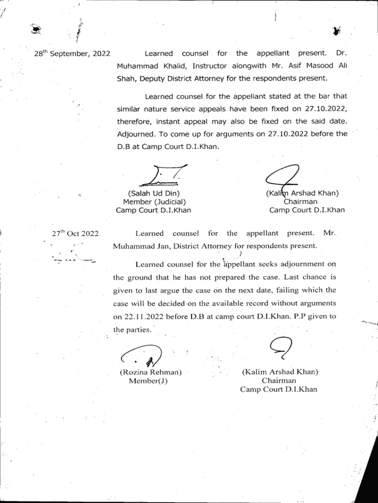 Y ; / i if\')28^*^ September, 2022Learnedcounselfortheappellantpresent. Dr. Muhammad Khalid, Instructor atonality Mr. Asif Mascot AN Shah, Deputy District Attorney for the respondents present. Learned