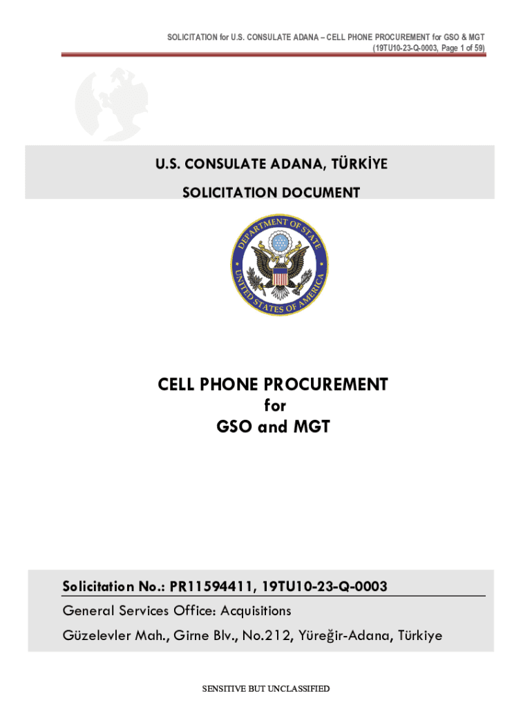 SOLICITATION for U.S. CONSULATE ADANA CELL PHONE PROCUREMENT for GSO & MET