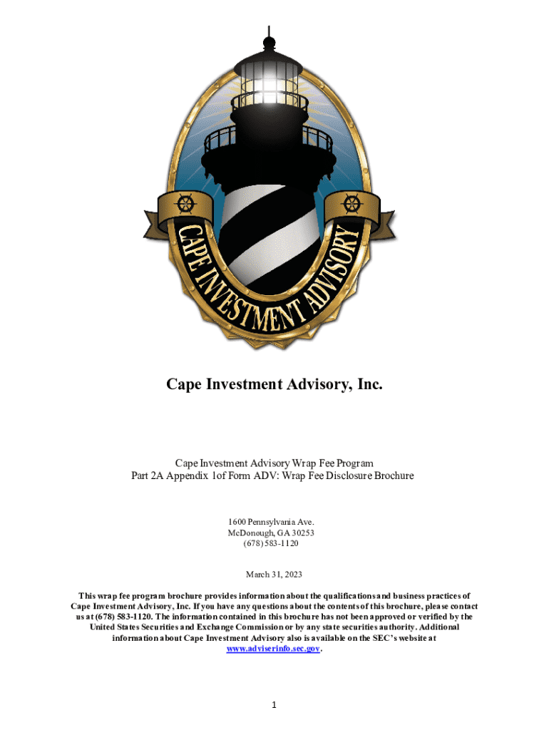 Cape Investment Advisory, Inc. Cape Investment Advisory Wrap Fee Program Part 2A Appendix 1of Form ADV: Wrap Fee Disclosure Brochure1600 Pennsylvania Ave. McDonough, GA 30253 (678) 5831120 March 31,