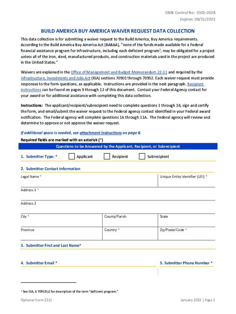 Get the free Optional Form 2211 - Build America Buy America Waiver Request Data Collection. Build...