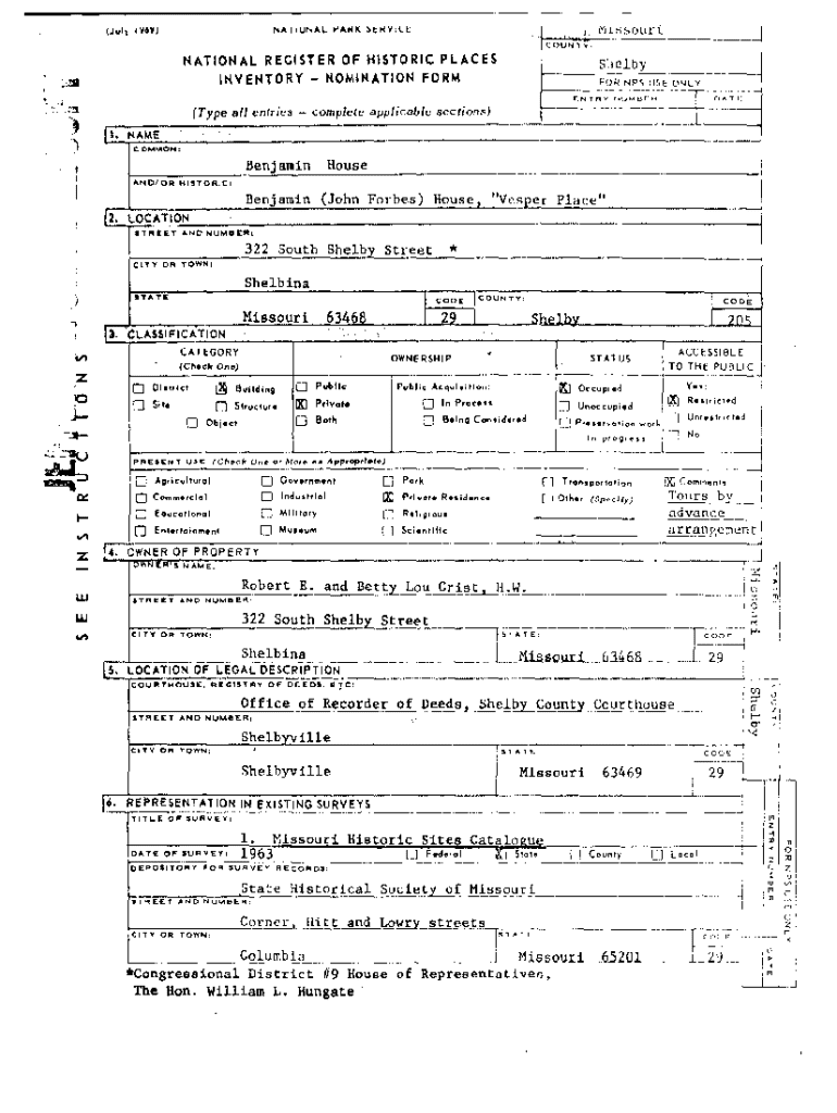 /\'NATIONAL t\'A.to. )tr(Silt(Jill Idol COUNTYINATIONAL REGISTER OF HISTORIC PLACES INVENTORY NOMINATION FORM_. ___S_h_e__l_b.c.y_ _ _ _ _ _for NPS USE ONLY___(T...:_y;_p_e_a_I_I_c_n_tr_i_c_s__c_o_m_p_le_t_c_a_p_p_l,