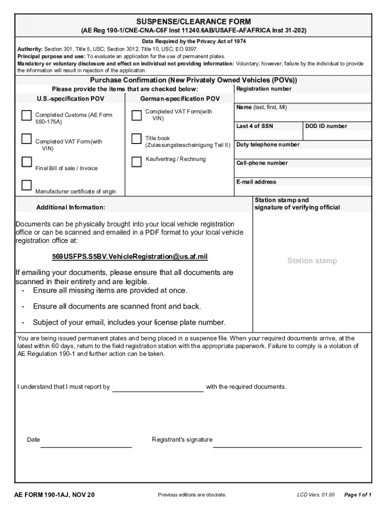(AE Reg 1901/CNECNAC6F Inst 11240.6AB/USAFEAFAFRICA Inst 31202)