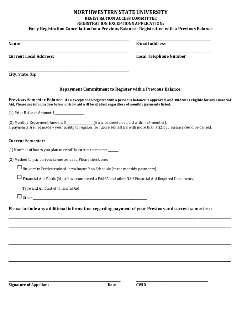 Get the free Page 1 of 2 NORTHWESTERN STATE ...