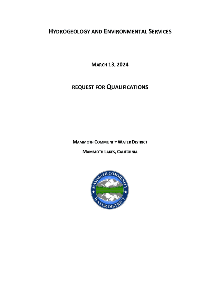 HYDROLOGY AND ENVIRONMENTAL SERVICESMARCH 13, 2024REQUEST FOR QUALIFICATIONSMAMMOTH COMMUNITY WATER DISTRICT