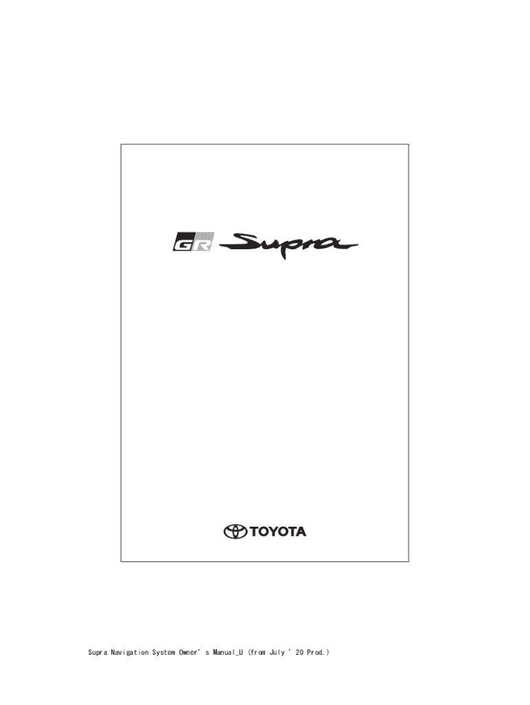 Supra Navigation System Owners Manual_U (from July 20 Prod.)2TABLE OF CONTENTS 1 NAVIGATION11. NAVIGATION Overview ................................. 4 Destination input ..................... 5 Trip