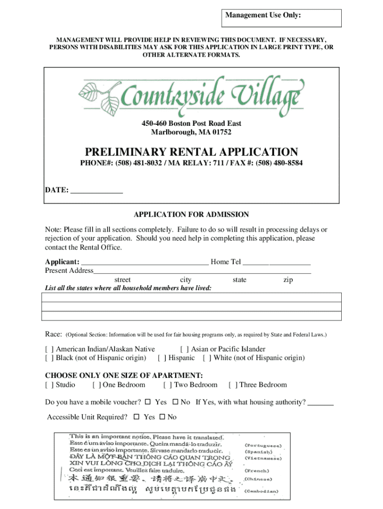 Management Use Only: MANAGEMENT WILL PROVIDE HELP IN REVIEWING THIS DOCUMENT. IF NECESSARY, PERSONS WITH DISABILITIES MAY ASK FOR THIS APPLICATION IN LARGE PRINT TYPE, OR OTHER ALTERNATE FORMATS.450460