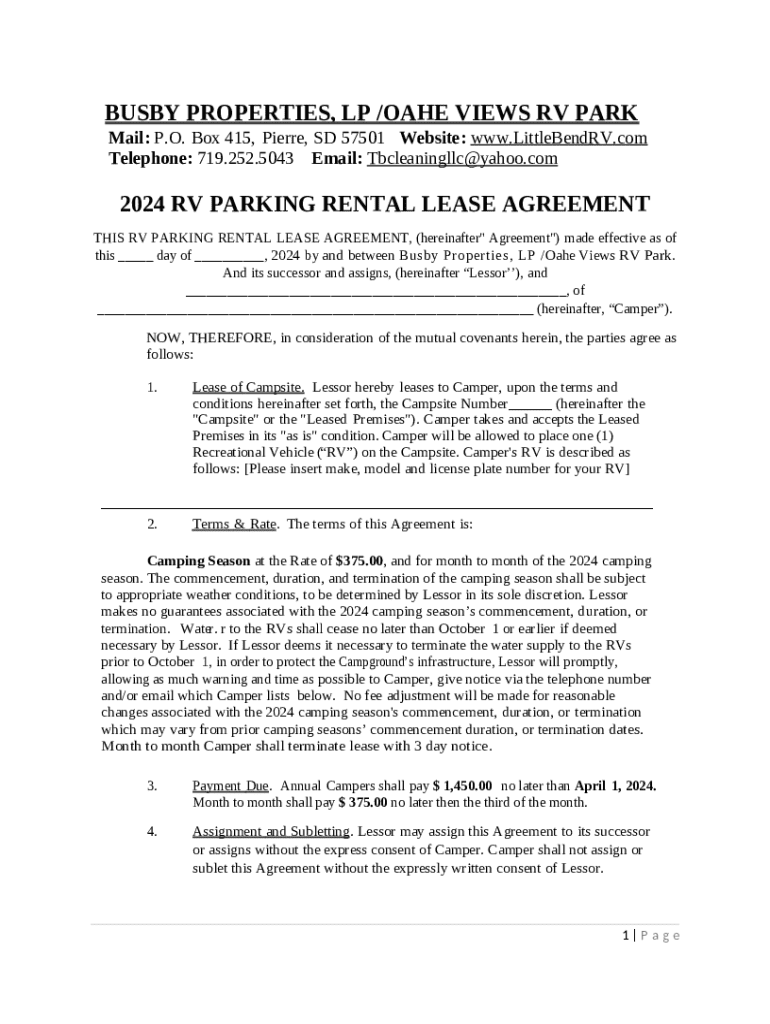 Frequently asked questions about the form BUSBY PROPERTIES, LP /OAHE VIEWS RV PARK