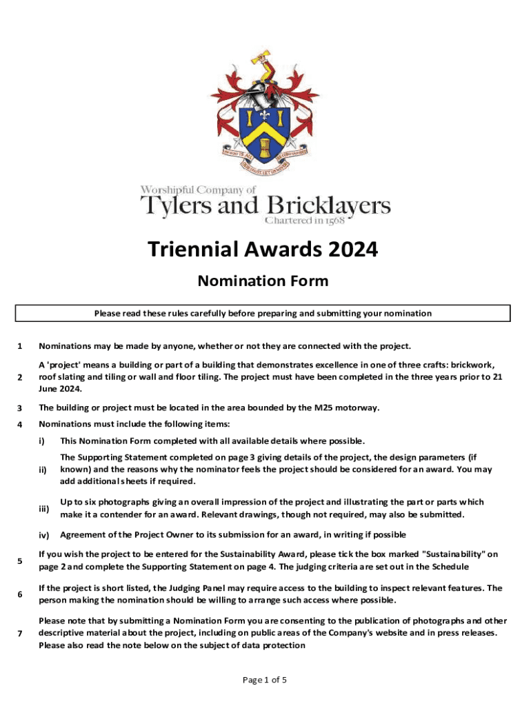Triennial Awards 2024 Nomination Form Please read these rules carefully before preparing and submitting your nomination 1Nominations may be made by anyone, whether or not they are connected with the