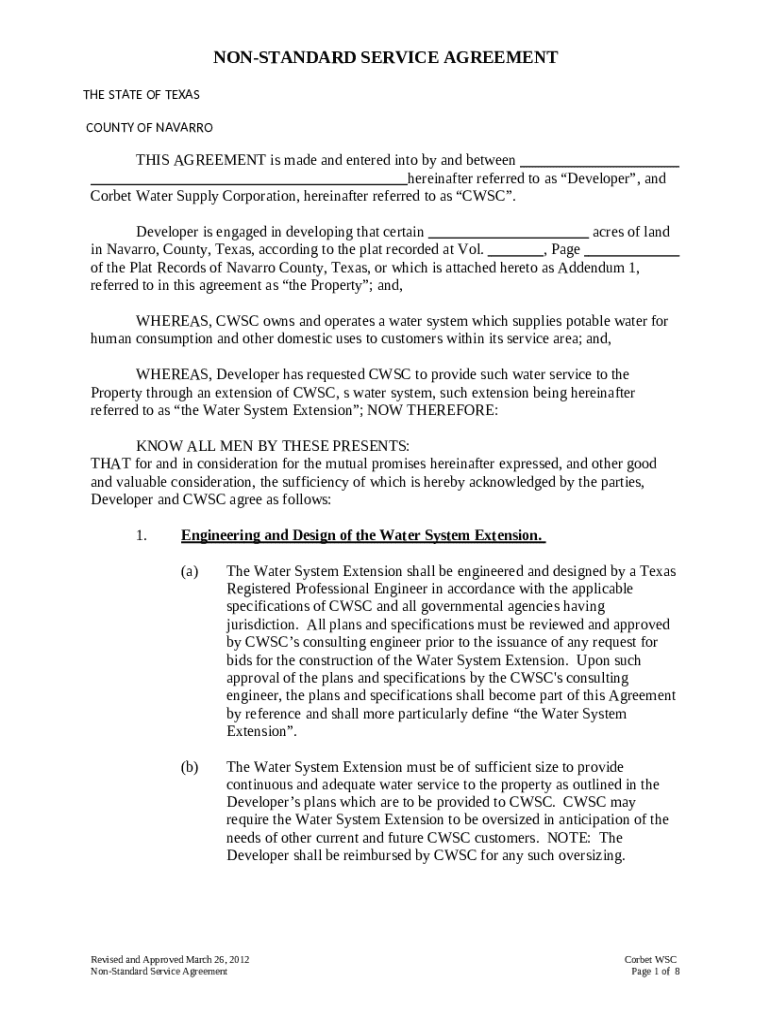 What is non-standard service agreement the state of texas ... Form?