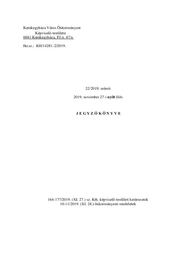 2019. November 27i NLT lsJEGYZKNYVE164177/2019. (XI. 27.) SZ. KTM. Kpviseltestleti hatrozatok