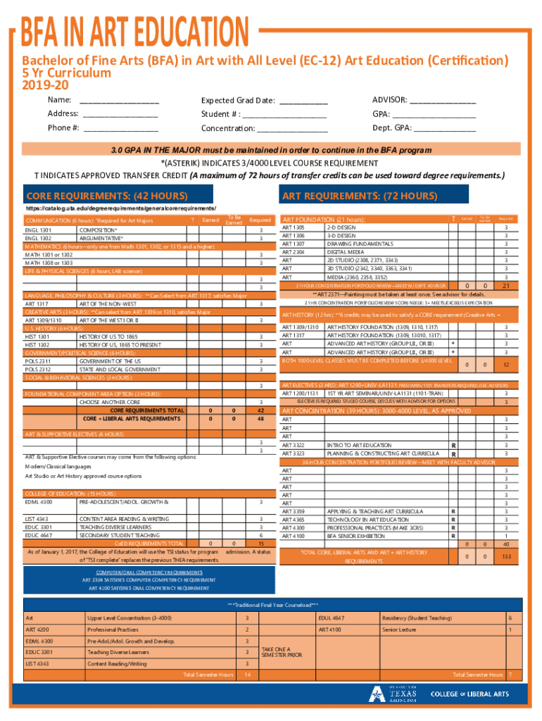 Get the free Bachelor of Fine Arts (BFA) in Art with All Level (EC-12) Art ...