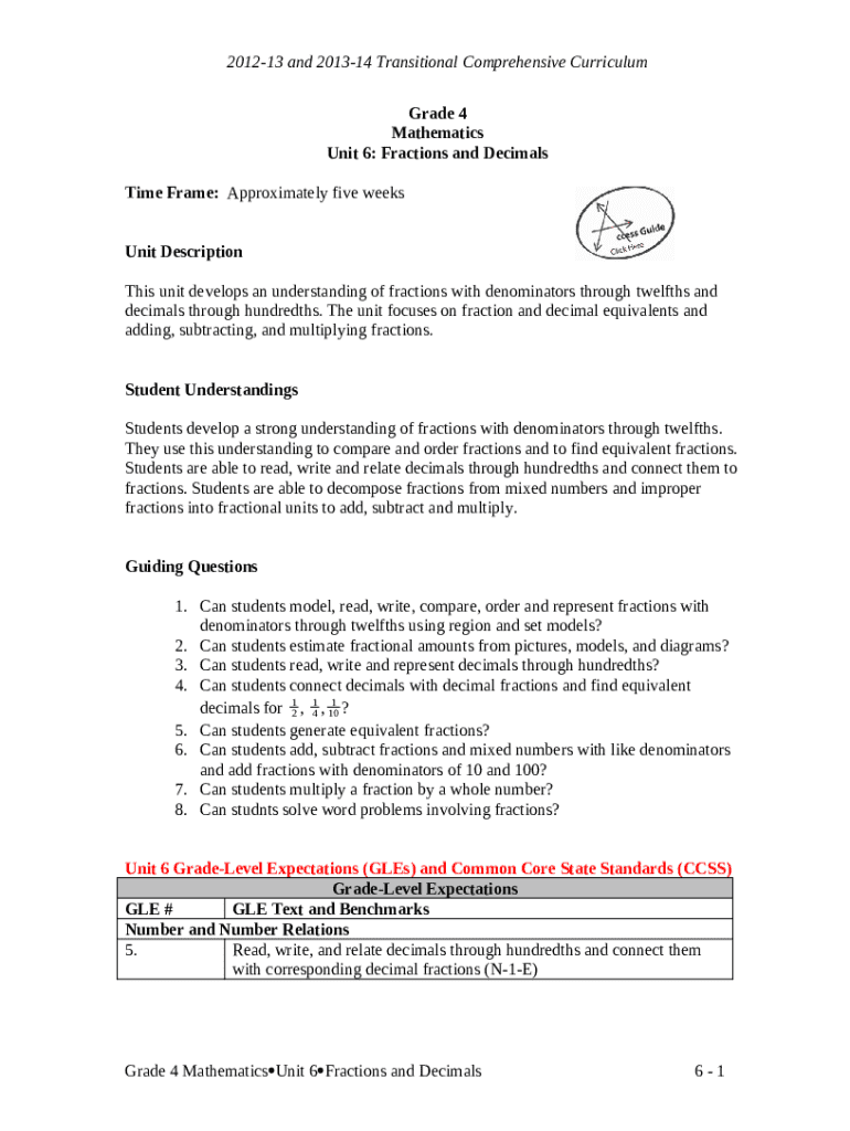 Instructions for the Frankie's Fractions and Decimals (Bridges Math Grade 4) form