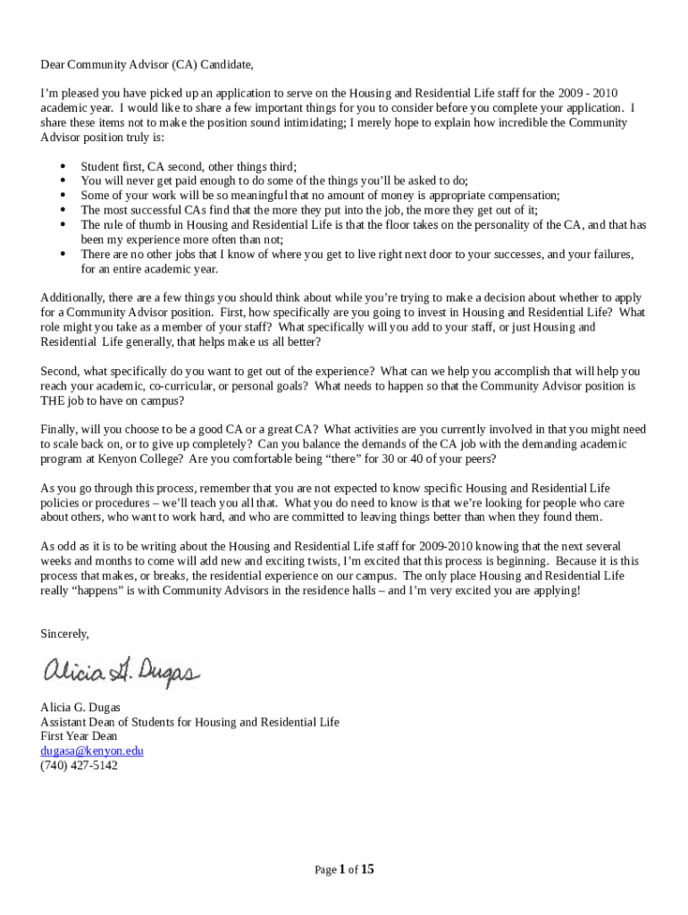 New Student Housing Ination - documents kenyon template instructions