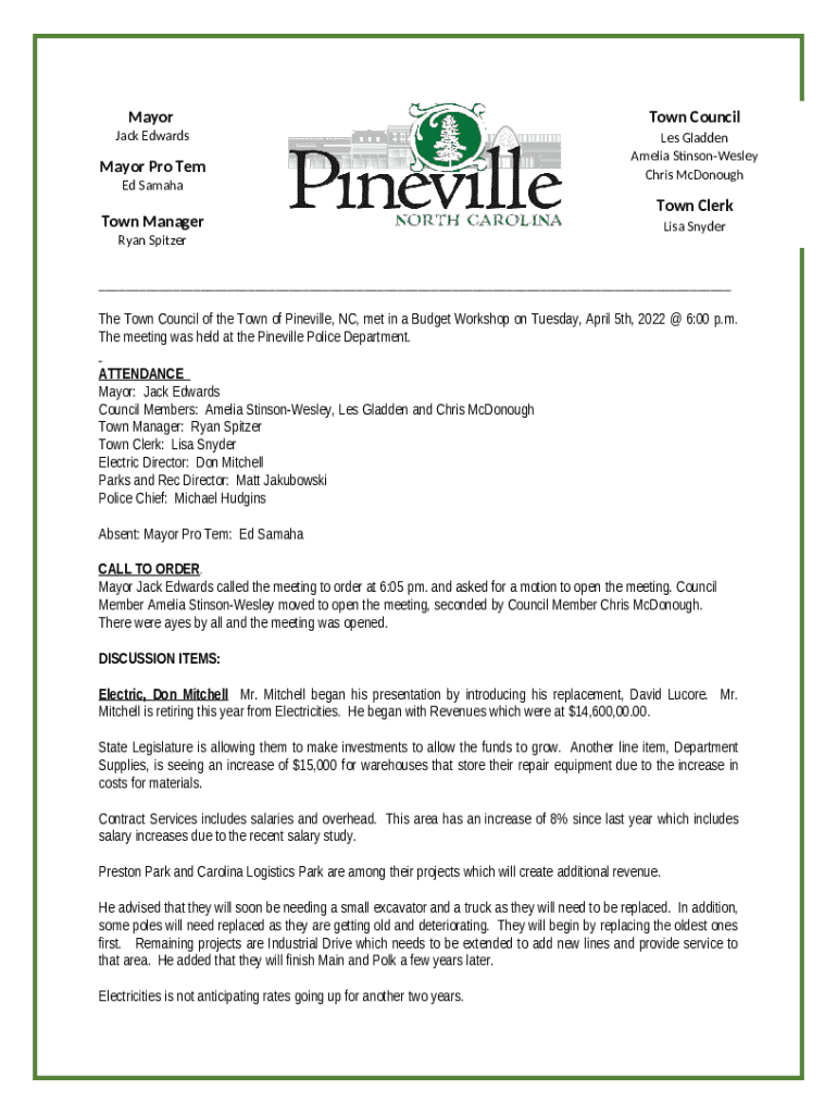 What is Budget Workshop - Town of Pineville, NC Form?