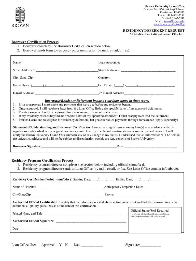 www.brown.edu/loanofficeRESIDENCY DEFERMENT REQUEST