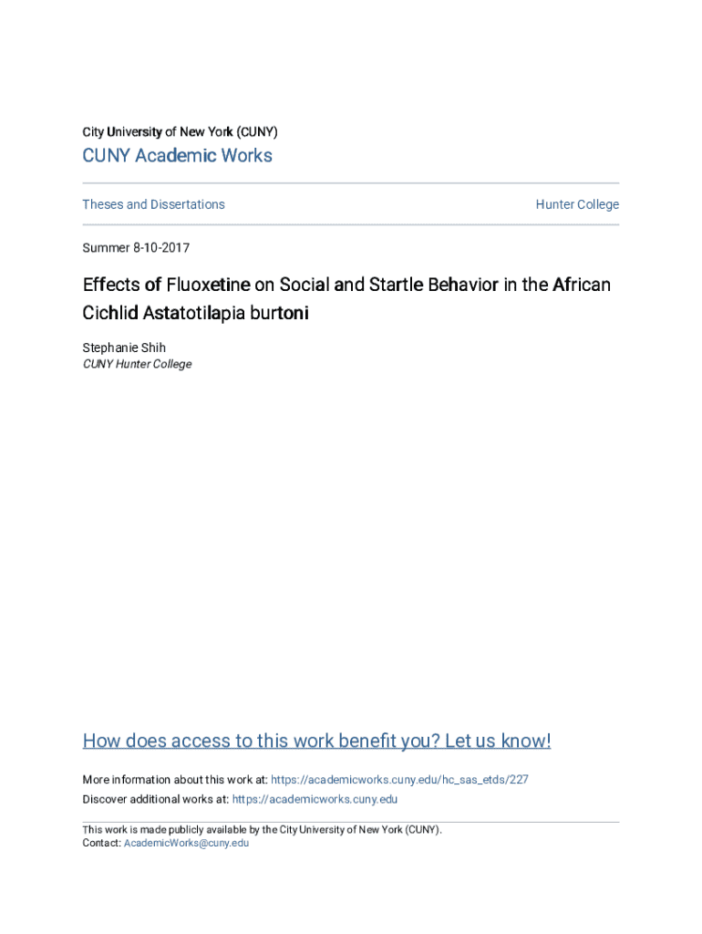 City University of New York (CUNY)CUNY Academic Works Theses and DissertationsHunter CollegeSummer 8102017Effects of on Social and Startle Behavior in the African Cichlid Astatotilapia burtoni Stephanie