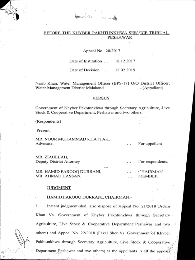 Get the free before the khyber pakhtunkhwa serxce tribual