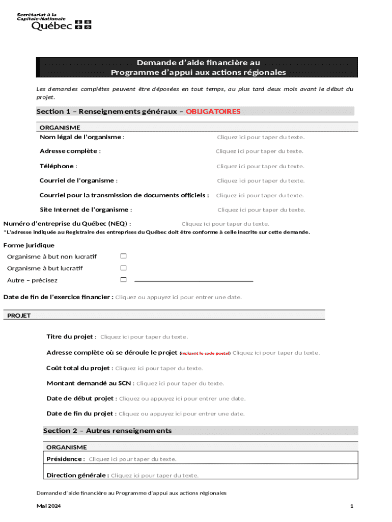 Instructions for the form Demande d'aide financire au Programme d'appui aux ...