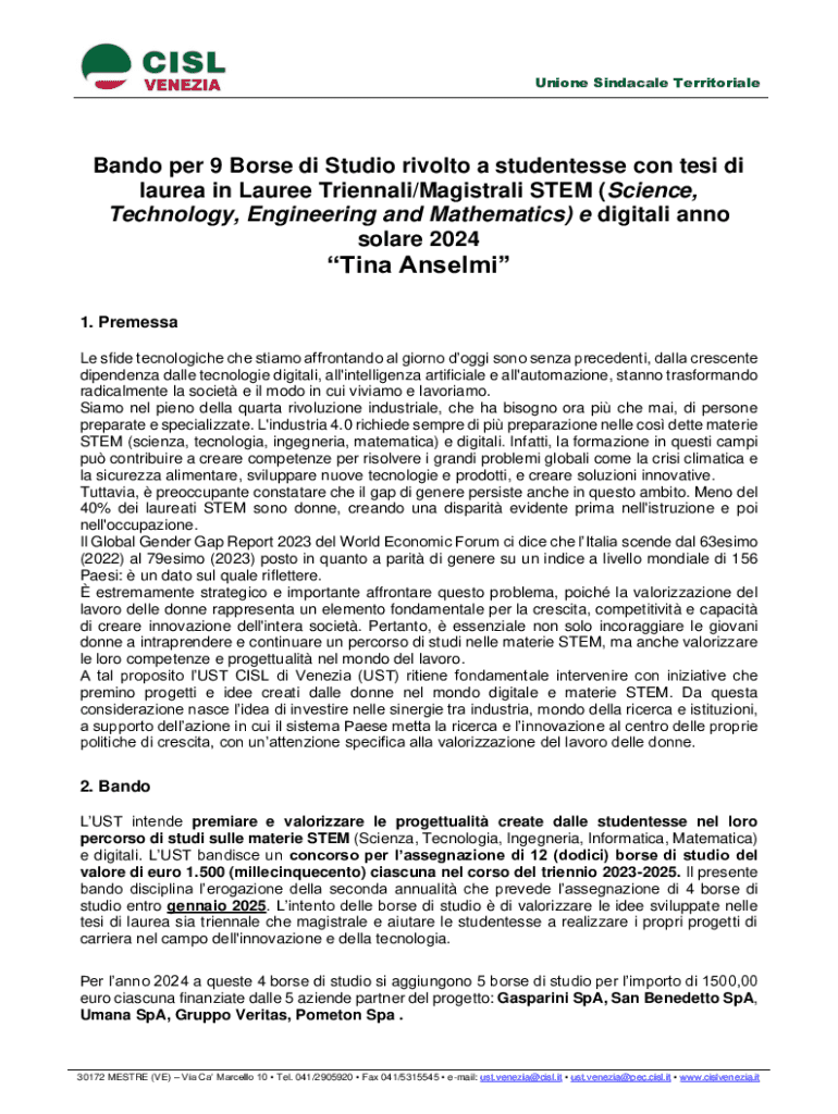 Ottieni il gratuito Bando per 9 Borse di Studio rivolto a studentesse con tesi di