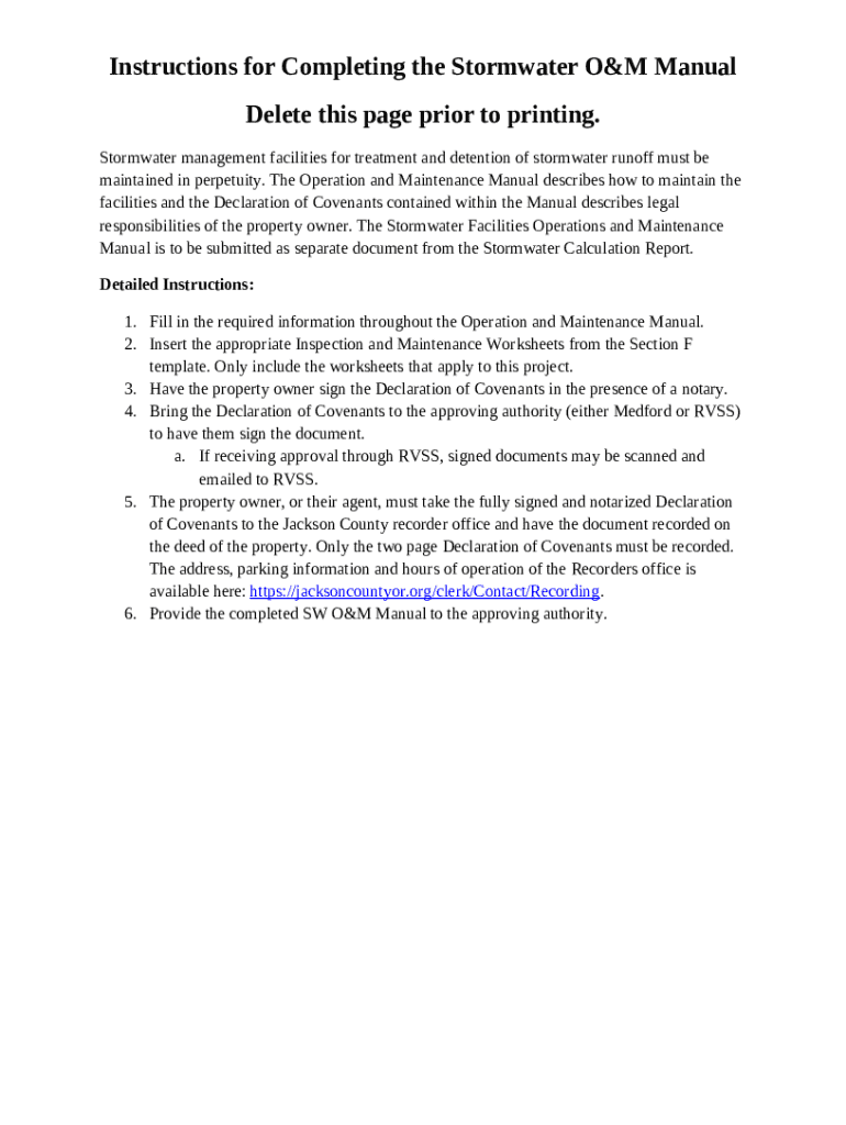 Instructions for the Instructions for Completing the Stormwater O&M Manual form