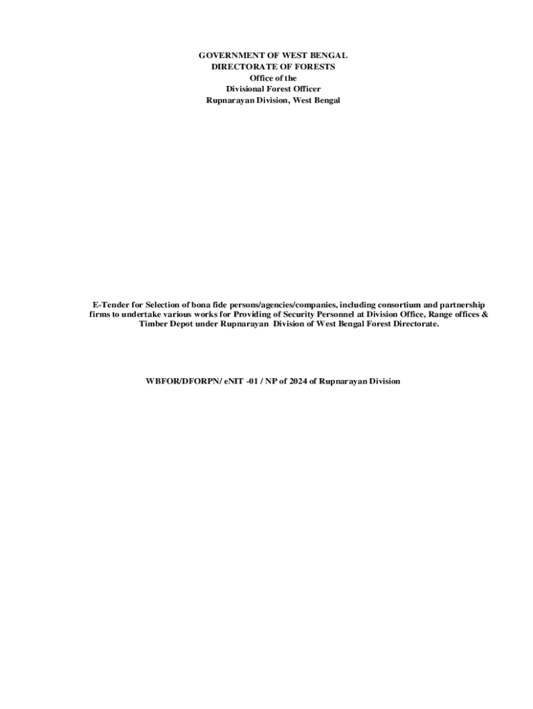 GOVERNMENT OF WEST BENGAL DIRECTORATE OF FORESTS Office of the Divisional Forest Officer Rupnarayan Division, West BengalETender for Selection of bona fide persons/agencies/companies, including consortium