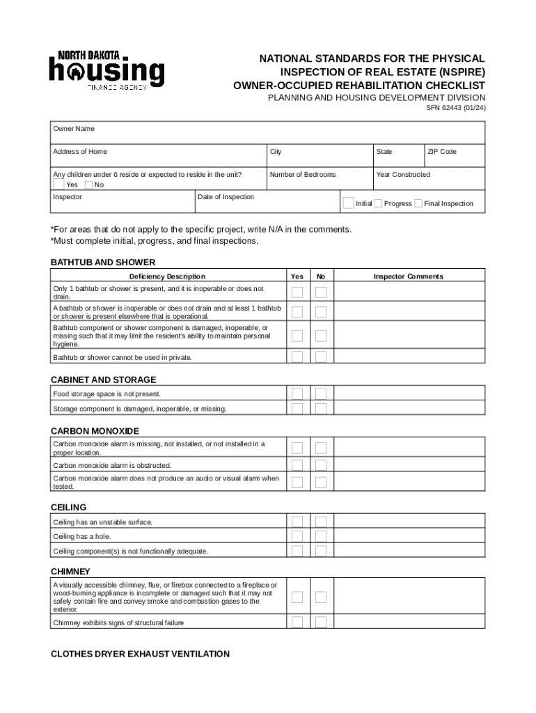 Template National Standards for the Physical Inspection of Real Estate instructions