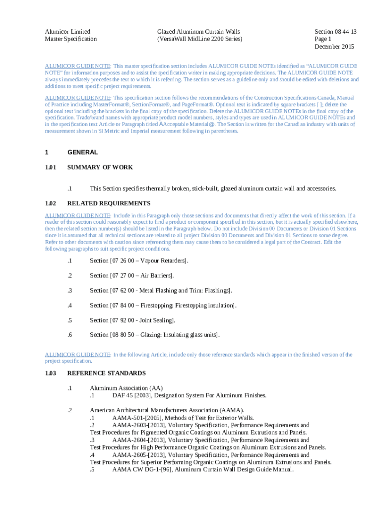 Instructions for the form Online Alumicor Limited Master Specification ...