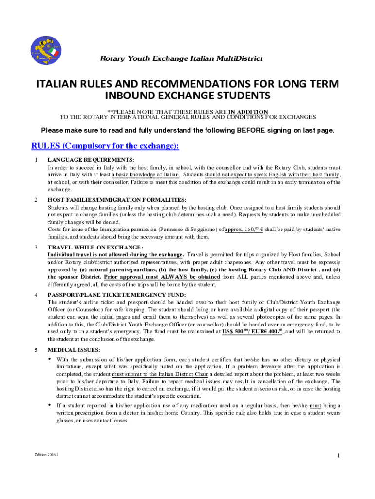 Fill out your rotary youth exchange italian online with pdfFiller!