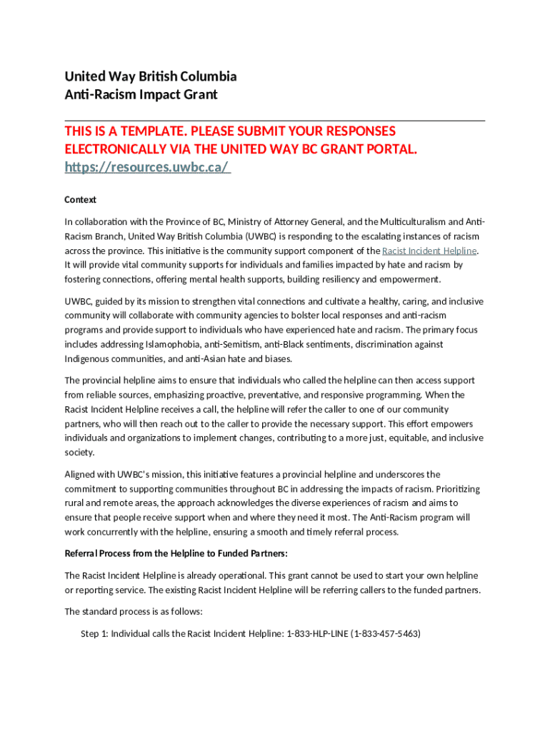 Anti-Racism Impact Grant Application Guide Context template instructions