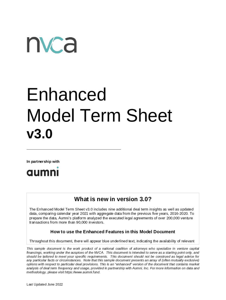 What is NEW Enhanced Model Term Sheet v3.0 Form?