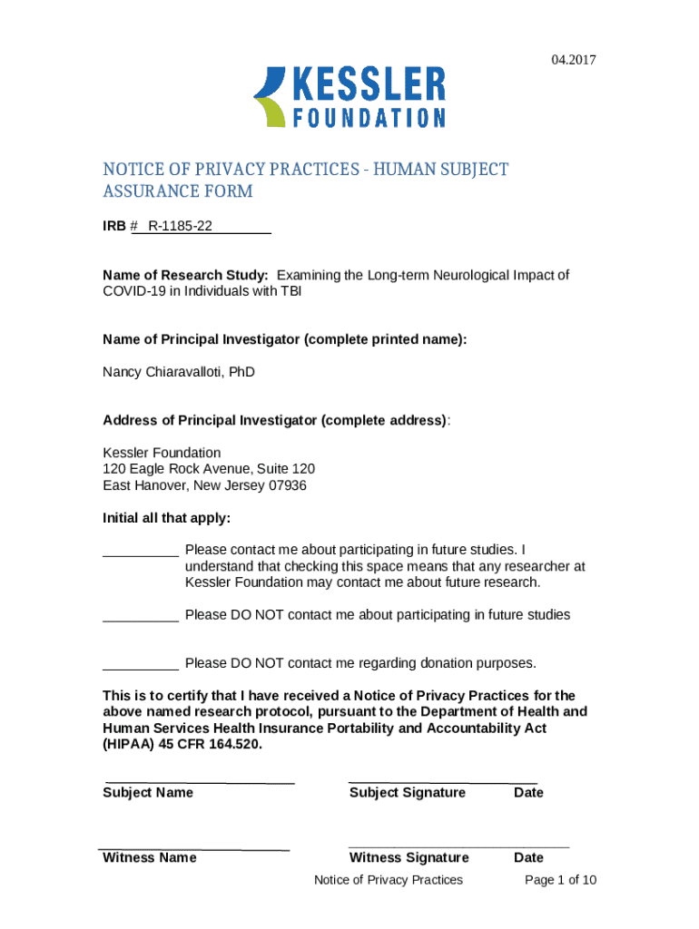 How to fill out NOTICE OF PRIVACY PRACTICES - HUMAN SUBJECT ASSURANCE