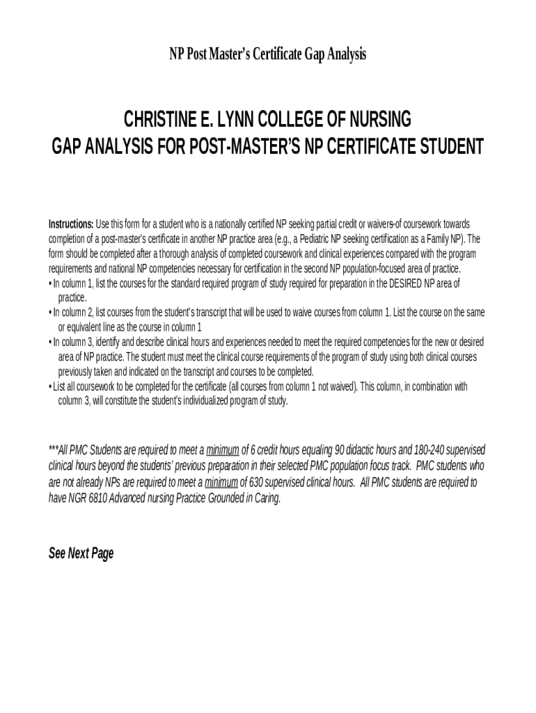 What is NP Post Master's Certificate Gap Analysis CHRISTINE E. ... Form?