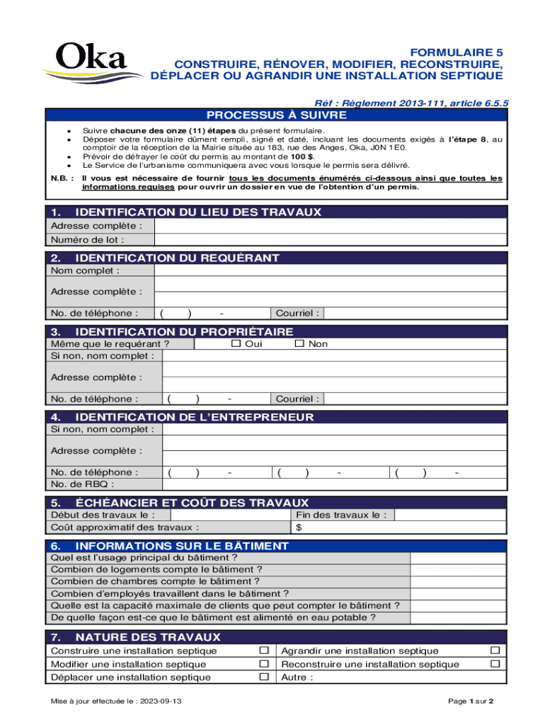 Obtenir le gratuit FORMULAIRE-5-Installation-septique.pdf - Municipalit d'Oka