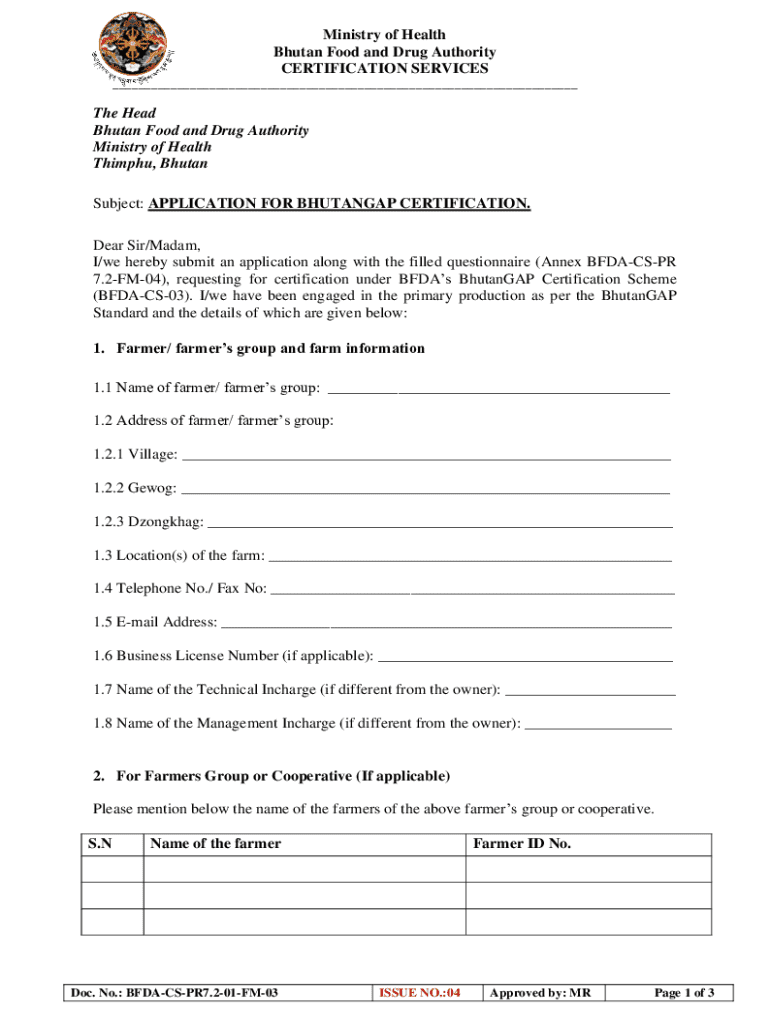 Get the free Bhutan Food and Drug Authority