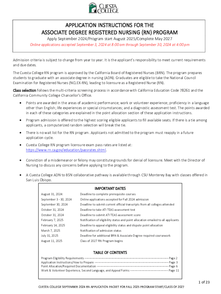 APPLICATION INSTRUCTIONS FOR THE ASSOCIATE DEGREE REGISTERED NURSING (RN) PROGRAM Apply September 2024/Program start August 2025/Complete May 2027 Online applications accepted September 3, 2024 at