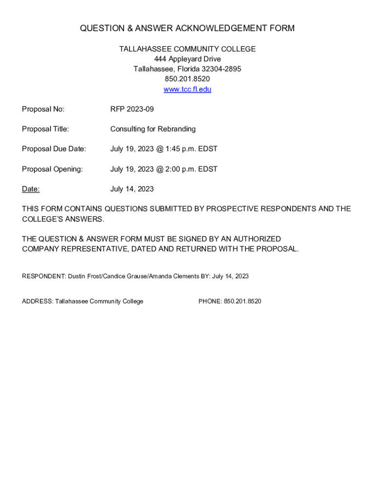 QUESTION & ANSWER ACKNOWLEDGEMENT FORM