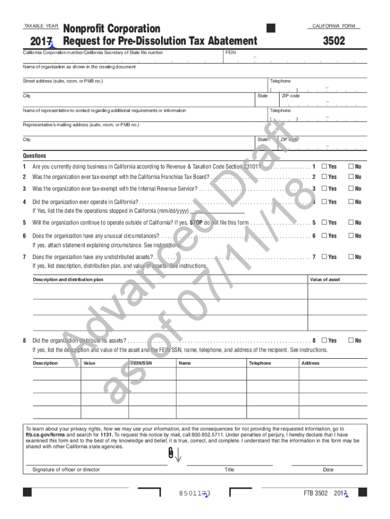 Get the free 2017 Form 3502 - Nonprofit Corporation Request for Pre ...