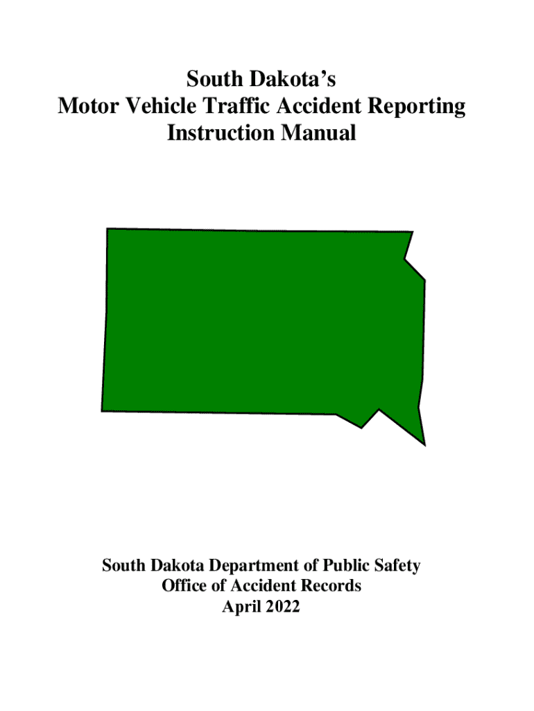 South Dakotas Motor Vehicle Traffic Accident Reporting Instruction ManualSouth Dakota Department of Public Safety Office of Accident Records April 2022Table of Contents Introduction ..............................................................................................................................................................3