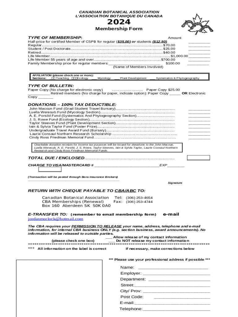 The Botanical Society of America 2024 Membership is a document needed to be submitted to the specific address to provide some information. It has to be filled-out and signed, which can be done manually, or by using a certain solution e. g. PDFfiller. It helps to complete any PDF or Word document directly in your browser, customize it according to your needs and put a legally-binding e-signature. Right after completion, user can send the Botanical Society of America 2024 Membership to the appropriate person, or multiple recipients via email or fax. The blank is printable too because of PDFfiller feature and options offered for printing out adjustment. Both in digital and physical appearance, your form will have got clean and professional appearance. You may also turn it into a template to use later, so you don't need to create a new file from the beginning. You need just to edit the ready sample.