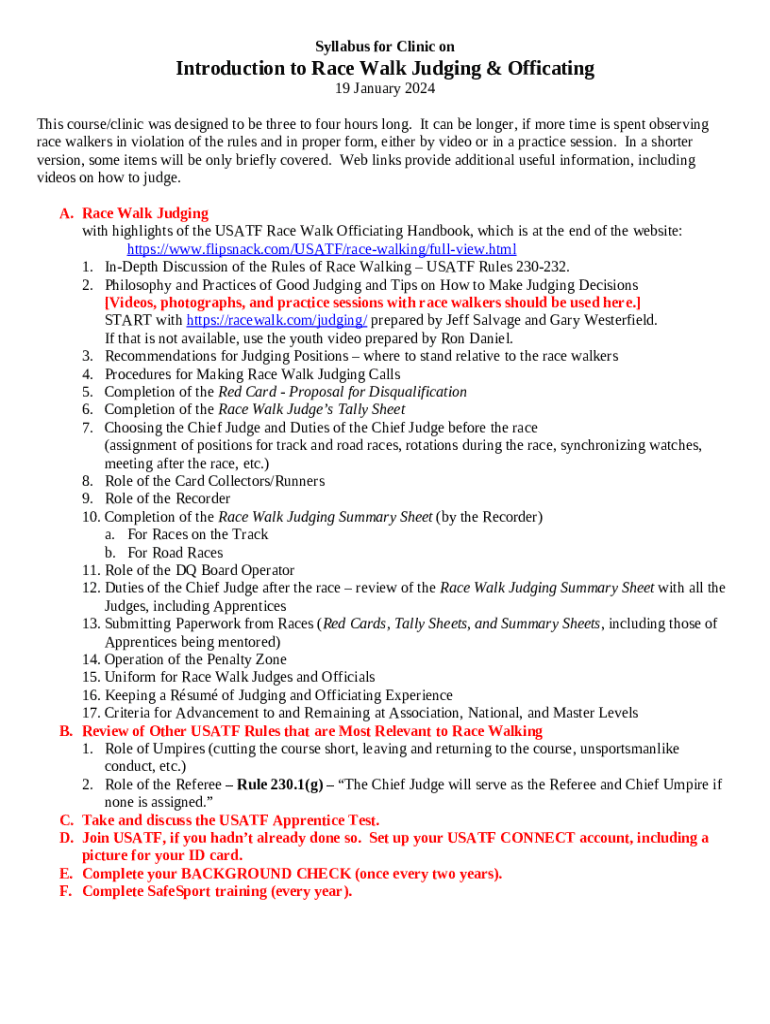 Instructions for the form Introduction to Race Walk Judging & Officating
