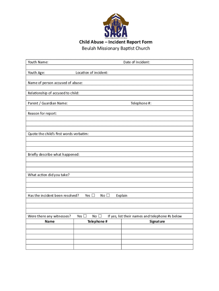 Get the free Child AbuseIncident Report Form Beulah Missionary Bapst ...