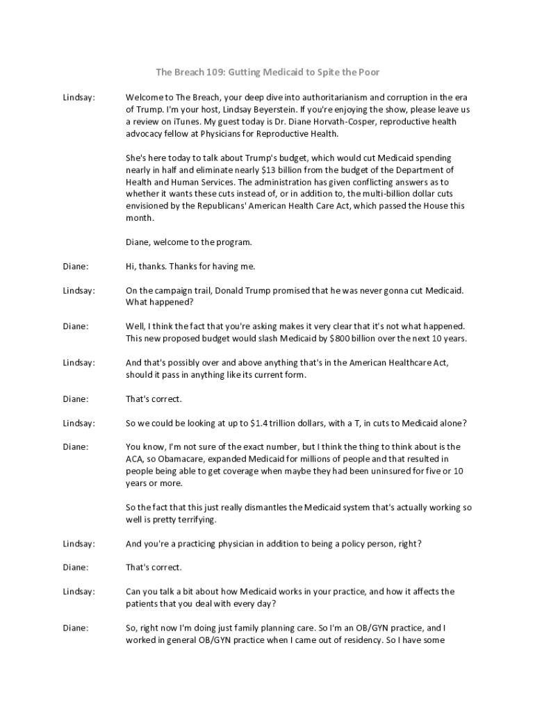 The Breach 109: Gutting Medicaid to Spite the Poor Lindsay:Welcome to The Breach, your deep dive into authoritarianism and corruption in the era of Trump. I\'m your host, Lindsay Beyerstein. If you\'re