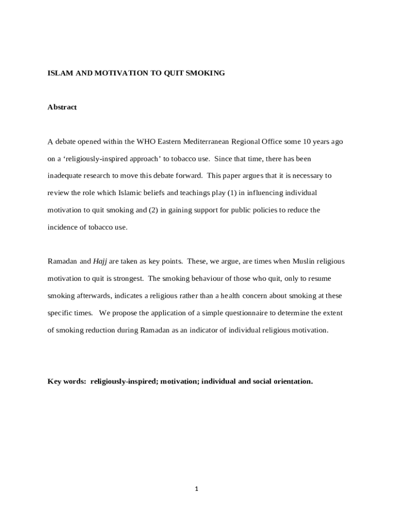 What is Islam and Motivation to Quit Smoking: Public Health Policy ... Form?