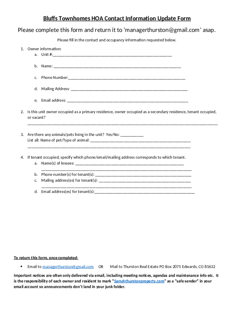 Instructions for the form Bluffs Questions/Concerns - Harbor at The Bluffs - j b5z