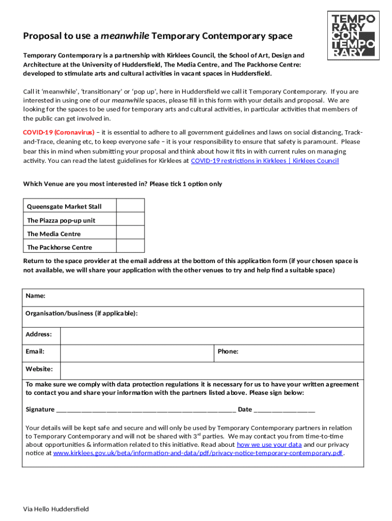 What is Proposal to use a meanwhile Temporary Contemporary ... Form?